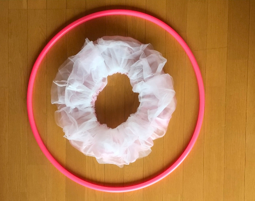 フラフープカバーの中側のゴムのギャザーを当てにせず、もっとたっぷりオーガンジーをつけるべきでした。