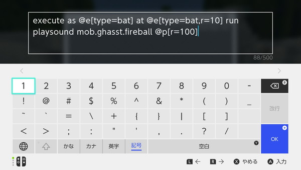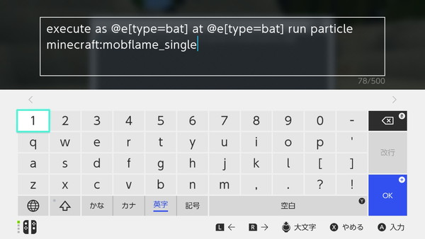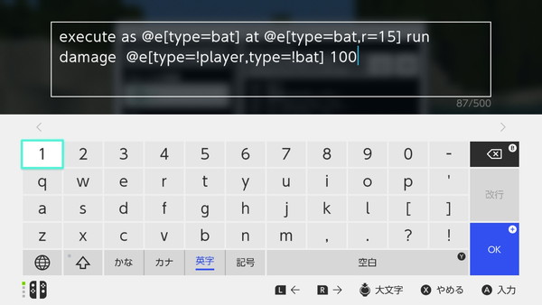 コウモリのスコア「かぐら」に1を次々に足していくコマンドを入力。