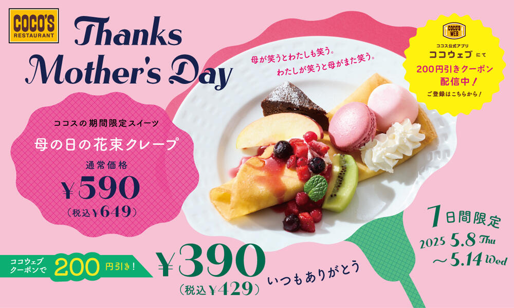 - 5月:母の日の花束クレープ 8日~14日