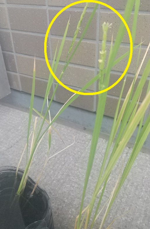 息子のペットボトル稲も、娘のペットボトル稲も、両方とも花が咲きました。