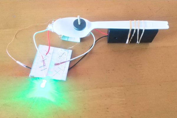 コマの磁石→コマの棒→プラスチックスプーン→スキマ→カバーのストロー→リードスイッチとなっているためです。